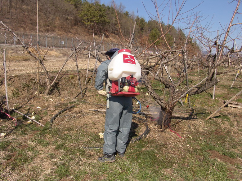 또한 작업 시에는 보안경과 방독면 등 보호구를 반드시 착용하고, 장비 부식을 방지하기 위해 사용 직후 방제기를 깨끗이 세척해야 한다.