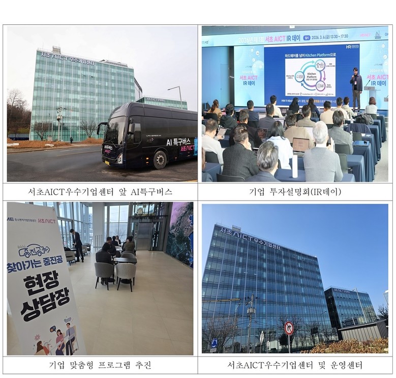 전성수 서초구청장은 “서초AICT 우수기업센터가 대한민국을 대표하는 AI 유니콘 기업의 요람으로 자리매김할 수 있도록 앞으로도 지원을 아끼지 않을 것”이라며, “양재AI특구 일대를 2030년까지 약 1,000개의 AI·ICT 기업이 집적되는 혁신 클러스터로 성장시켜 대한민국이 AI 분야 G3로 도약하는 데 서초구가 중추적인 역할을 해 나가겠다”고 말했다.