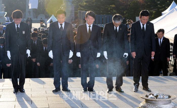 안철수 국민의당 대선후보가 19일 오전 손학규 상임선대위원장과 함께 서울 강북구 국립 4·19 민주묘지를 찾아 참배하고 있다. 2017.04.19.