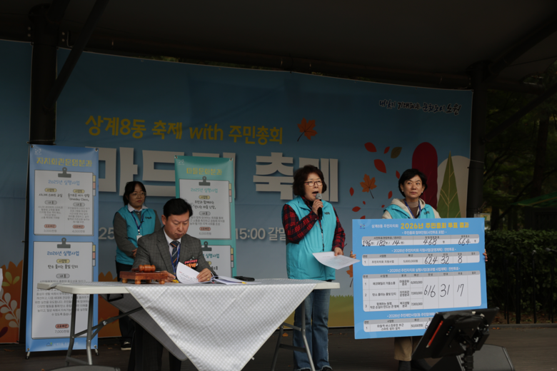 | ▲ 상계8동 축제에서 주민총회 투표결과를 발표하는 모습 |