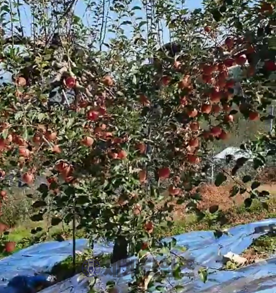 | ▲ 사과 나무 희 뿌연 녹색잎과 뻐얼건 사과는 언제 또 떨어질까? 국민들은 두렵다 맛도 없는 사과 먹는게 |
