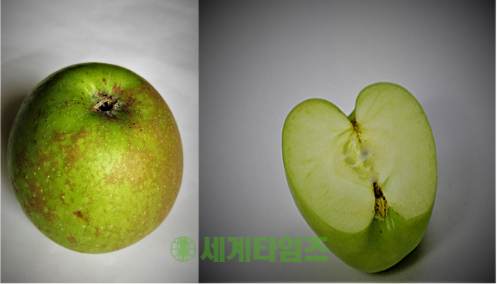 | ▲((크라우드픽 사진 제공/ 편진 세계타임즈) 사과를 가르니 사과의 씨가 없다. 이 사과의 종자는 미래에도 존재 할까? |