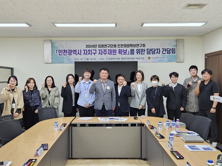 인천시의회 인천재원확보연구회(대표의원 신동섭)는 최근 의회 행정안전위원회 세미나실에서 신동섭 대표의원을 비롯해 인천시 재정담당자, 8개 자치구 관계자 등 10여 명이 참석한 가운데 ‘자치구 자주재원 확보를 위한 담당자 간담회’를 개최했다고 8일 밝혔다.