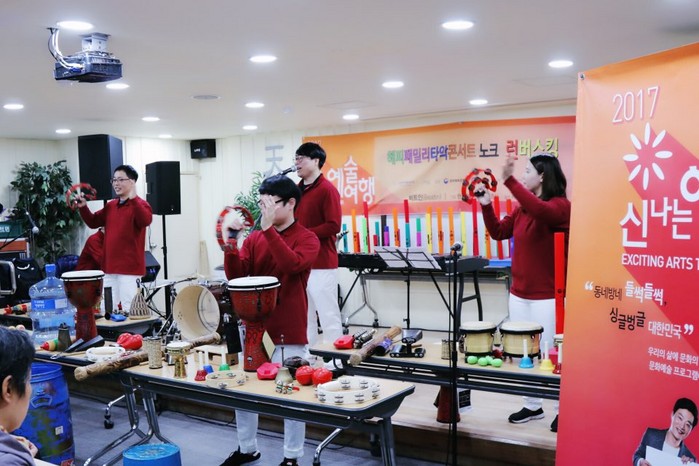 장애인의 눈눞이를 고려한 친근한 해설이 돋보인 이번 공연은 ‘신나는 예술여행’의 일환으로 전국 사회복지관을 순회(총 12회)하며 진행하는 ‘해피패밀리콘서트’와 관람객이 직접 즉흥연주로 참여하며 합주를 펼치는 ‘투게더 타악전시회’가 콜라보로 이루어진 다섯번째 무대였으며, 장애인과 비장애인이 함께 더불어 사는 사회를 만들고자 기획되었다.