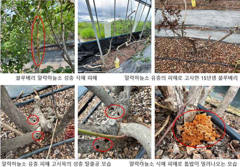 | ▲ 천공성해충 알락하늘소 블루베리 피해 |
