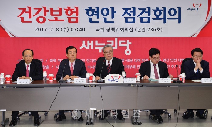 새누리당 인명진 비상대책위원장과 정우택 원내대표를 비롯한 당정 관계자들이 8일 오전 서울 여의도 국회 정책위회의실에서 건강보험 현안 점검회의를 하고 있다. 2017.02.08.