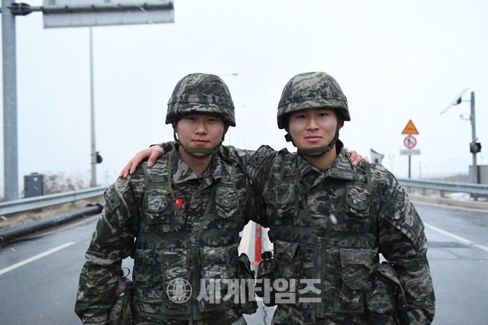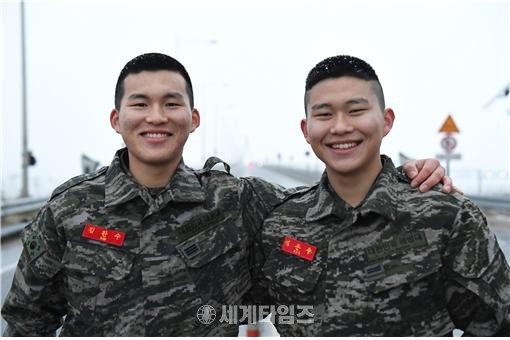 | ▲ © 세계타임즈 <상승연대에서 근무하고 있는 셋째 김완수 해병(오른쪽)과 넷째 김문수 해병(왼쪽)> |