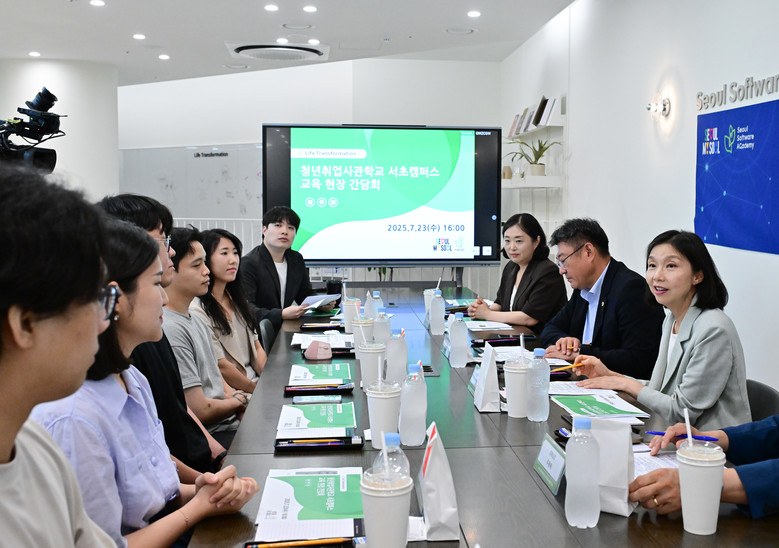 [서울 세계타임즈=이장성 기자] 최호정 서울특별시의회 의장은 23일(수) 고속터미널역에 자리한 청년취업사관학교 서초캠퍼스를 방문해 AI융합 과정에 참여하는 교육생, 강사들과 간담회를 갖고 발전방안을 모색했다. 방문에는 박상혁 서울시의회 교육위원장(서초구1)이 함께했다.