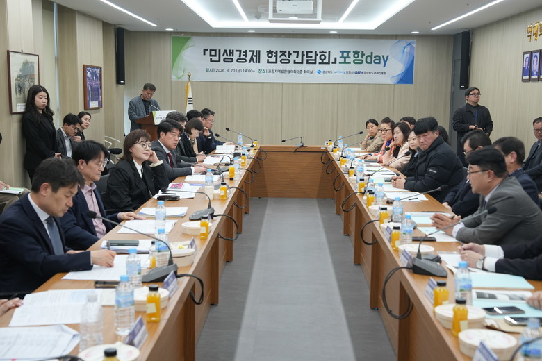 [경북 세계타임즈=한윤석 기자] 경상북도(이하 도)는 3월 20일(금) 14시 포항지역발전협의회 대회의실에서 지역 현장의 목소리를 청취하고 상생 발전 방안을 모색하기 위해 ‘민생경제 현장 간담회(포항의 날)’를 개최했다.