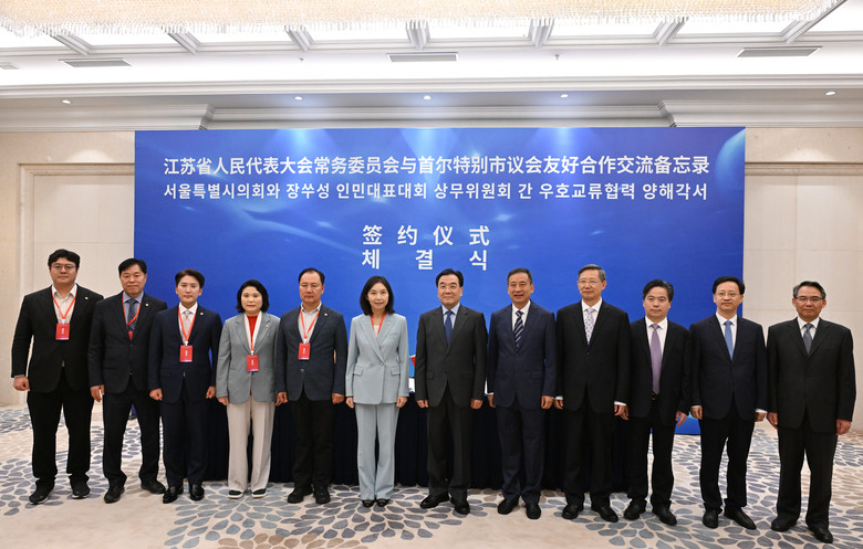 10월 15일, 최호정 의장은 신창싱 장쑤성 당서기 겸 장쑤성인대 상무위원회 주임과 의회 간 우호교류협력 MOU를 체결하여 공동 발전을 위한 교류 기반을 마련하였다. 신창싱 장쑤성 당서기는 “지방의회 간 교류와 경제 교류 강화 및 인문 분야 교류 확대”를 제안하며 양측 MOU 체결에 긍정적인 기대를 표명했다.