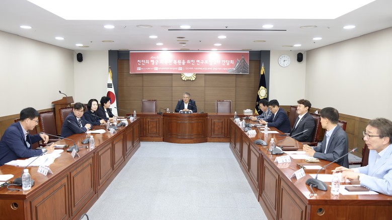 [천안시 세계타임즈=백택기 기자] 천안시의회「천안의 행궁 화축관 복원을 위한 연구모임」이종만(대표의원), 유영진, 류제국, 이상구, 김행금, 노종관, 김강진 의원은 21일 복지문화위원회 회의실에서 2차 간담회를 개최했다.