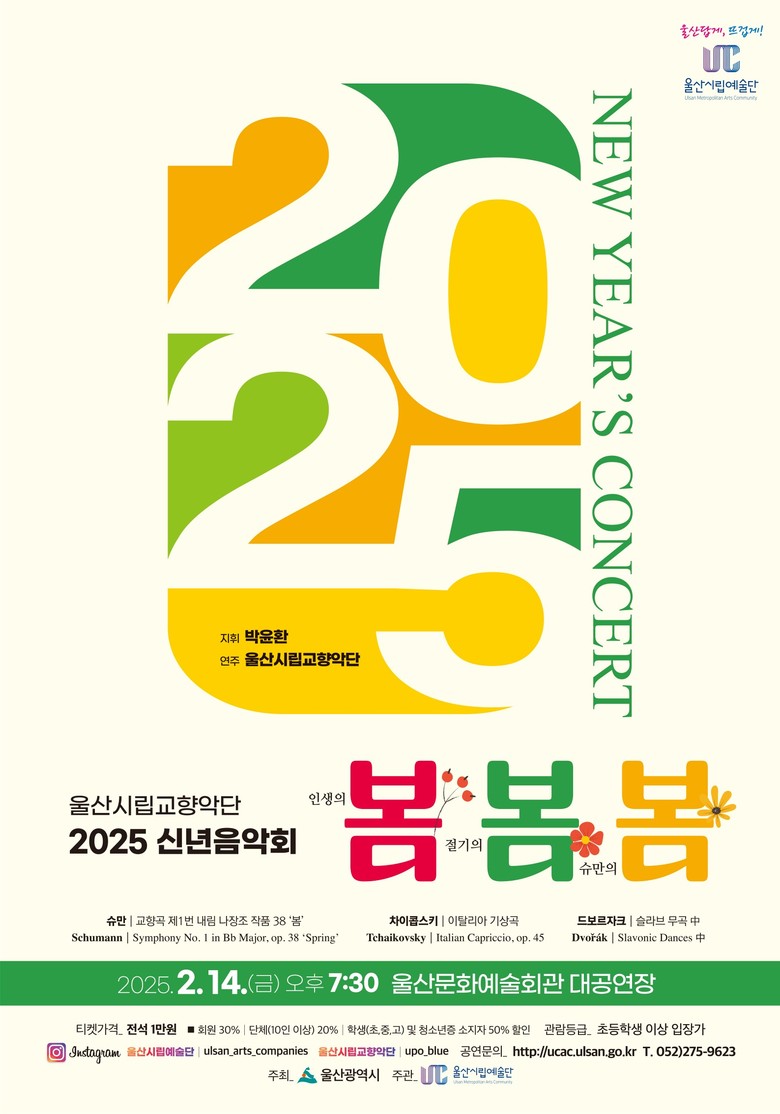 울산시립예술단 관계자는 “경쾌하고 활력 넘치는 클래식 선율로 시민의 새해 새 출발을 응원하기 위해 봄기운이 전해지는 다양한 작품으로 관객맞이를 준비하고 있다”라며 “울산시립교향악단이 선사하는 신년음악회와 함께 2025년을 가볍고 경쾌하게 출발해 보시기를 바란다”라고 말했다.