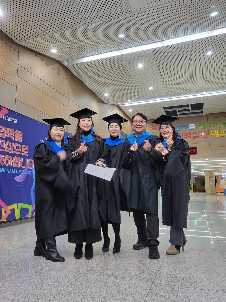이날 『통일 미래 최고위 과정』제14기 후기 수료식에 남길우 회장 (석좌교수) 행정대학원 윤태영 원장, 이정혜 보훈 방송 편집국장. 보훈처 사무국장, 광포횟집 정선이 대표 등 내빈들과 강 명상 회장 (총학생회) 대학원 동기들이 참석한 가운데 수료식이 거행됐다.