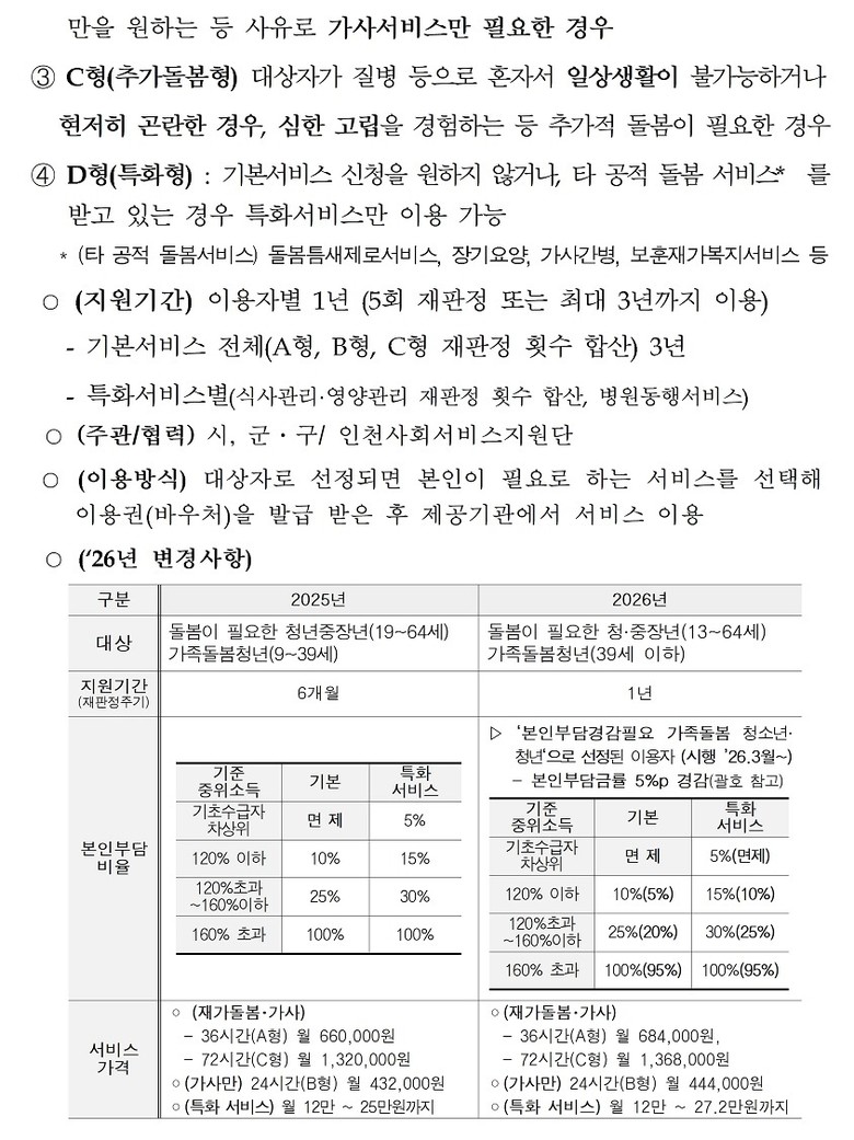 특히 2026년 3월부터 본인부담 경감이 필요한 가족돌봄 청소년·청년으로 선정된 이용자는 기존 본인부담금률에서 5% 포인트가 경감돼 경제적 부담이 완화될 전망이다.