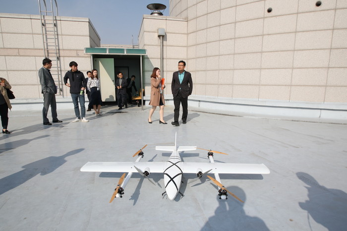 이날 KT는 채 시장 등 관계자들이 지켜보는 가운데 KT가 보유한 드론 관제 솔루션을 시연했다. 경광등을 장착한 드론이 이륙한 뒤 100m 지점에서 고정익 변환으로 사각지대를 촬영하고, 저속(20Km/h) 영상을 지상으로 전송한 다음, 고속(70Km/h)로 이동하며 고화질 영상을 지상 관제 요원에게 끊김없이 전송했다. 영상 전송은 모두 최고 수준의 안정성과 커버리지를 제공하는 KT의 LTE 네트워크를 통해 이뤄졌다.