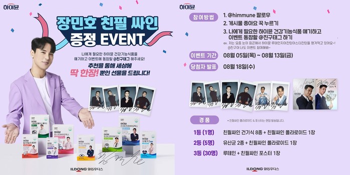 올해 초 하이뮨 건강기능식품 8종을 출시하며 국민들의 건강 지키기에 나선 일동후디스는 이번 이벤트를 통해 전속 모델 장민호의 싸인 굿즈를 제공하는 등 팬들에게 더욱 특별한 추억을 제공할 예정이다.