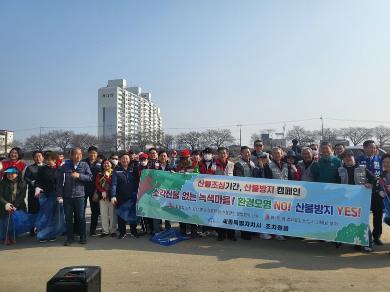 [세종 세계타임즈=이채봉 기자] 세종특별자치시 조치원읍(읍장 김병호)이 지난 26일부터 27일까지 조천변 벚꽃길 일원에서 ‘소각산불 없는 녹색마을 만들기’ 산불방지 홍보활동을 전개했다.
