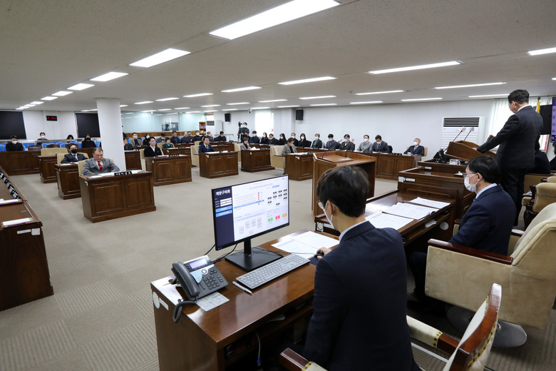 [계양구 세계타임즈=심하린 기자] 인천 계양구의회(의장 조양희)는 지난 2월 6일부터 2월 21일까지 16일간의 일정으로 제240회 임시회를 개회하고 2023년도 주요업무계획 보고를 비롯해 조례안 등 상정된 안건을 심의했다.