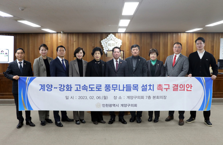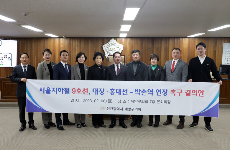 또한 계양구의회는 지난 6일 제240회 임시회 본회의에서 『계양~강화 고속도로 풍무나들목 설치』 및 『서울지하철 9호선, 대장·홍대선~박촌역 연장』에 대한 촉구 결의안을 전의원 만장일치로 채택했다.