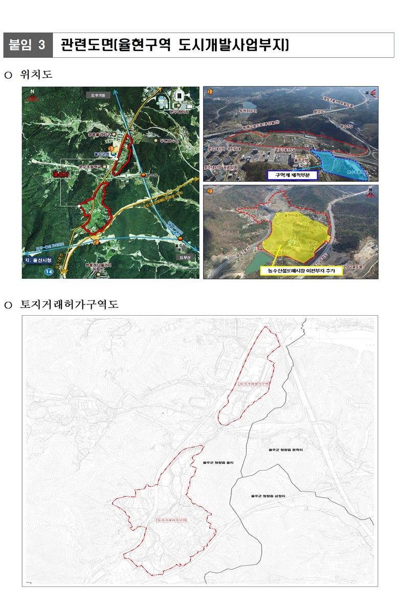 또한 ‘율현구역 도시개발사업부지’ 68만 7326㎡(771필지)는 올해 1월 29일부터 오는 2028년 1월 28일까지 3년간 토지거래허가구역으로 변경지정 된다.