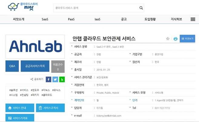 안랩의 이번 등록으로, 효과적인 클라우드 보안 운영을 고민하는 공공기관에서는 ‘씨앗’ 스토어에서 안랩이 제공하는 전문적인 클라우드 보안관제 서비스를 손쉽게 신청할 수 있다.