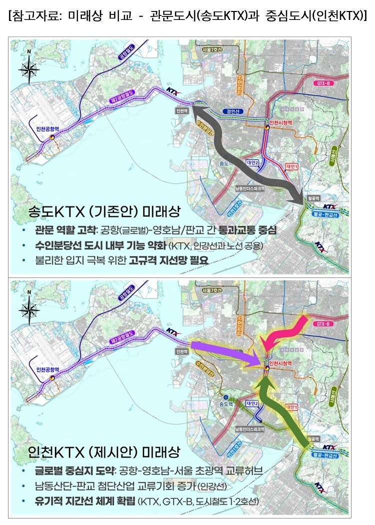 인천연구원 정동재 연구위원은 “인천의 광역 접근성 강화는 단순한 교통 개선을 넘어 도시의 위상과 구조를 전환하는 전략 과제”라며, “인천 중심, 특히 인천시청 권역을 복합기능 중심지로 육성하고 철도망 계획 재구조화를 통해 글로벌 경쟁력을 갖춘 도시로 도약할 수 있는 기반을 마련해야 한다”고 밝혔다.