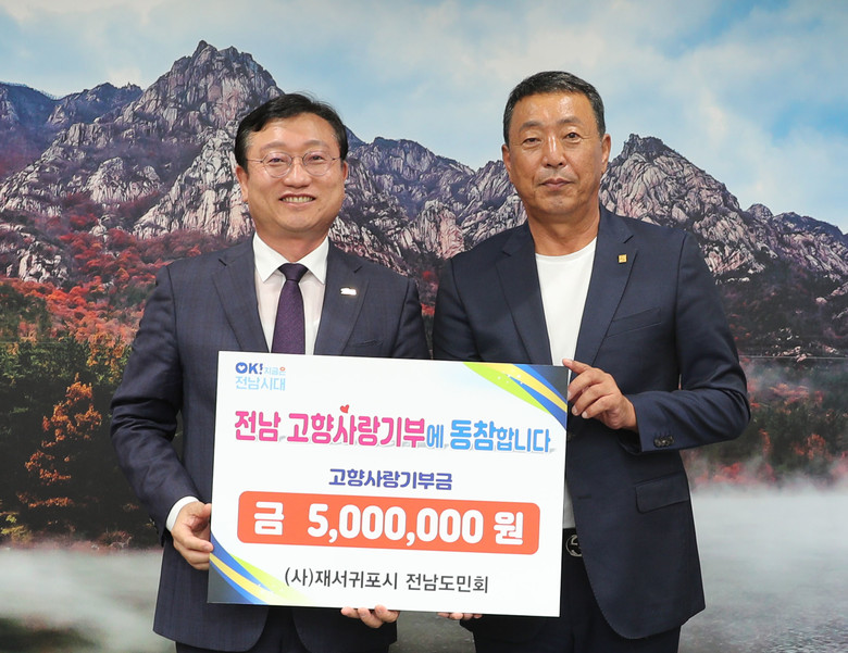 [전남 세계타임즈=우덕현 기자] 전라남도는 (사)재서귀포시 전남도민회가 지난 10일 고향사랑기부금 500만 원을 전남도에 기탁했다고 밝혔다.