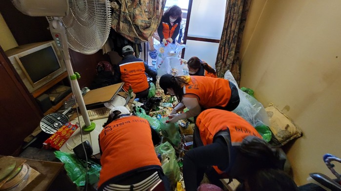 이날 봉사에는 유희자 단장을 비롯한 회원 15명이 복지사각지대 독거사 위험에 처한 중장년 독거남 가정의 집안쓰레기 약 3톤가량을 치우는 봉사를 하였다.