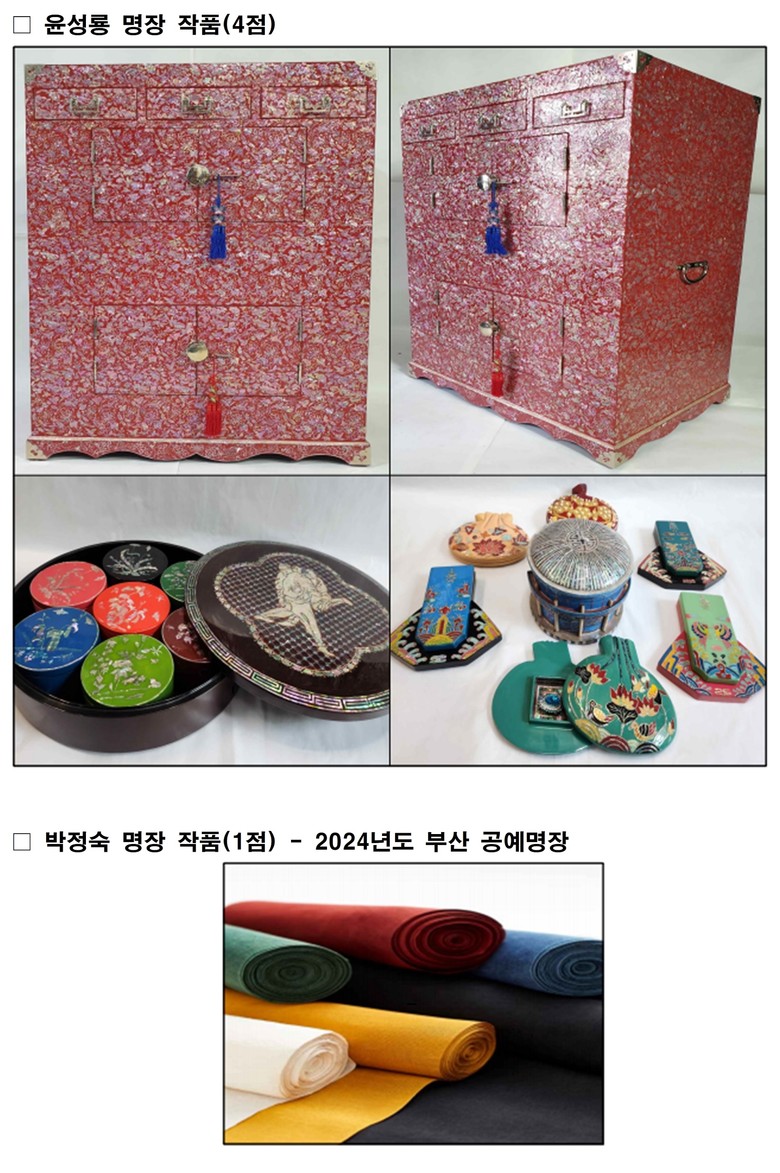 박형준 시장은 “올해 공예명장으로 선정된 윤성룡 대표는 장애를 이겨내며 전통 나전칠기 분야의 명맥을 지켜온 진정한 장인으로, 뛰어난 숙련 기술과 예술혼을 바탕으로 지역 공예 문화 발전에 크게 이바지했다”라며, “앞으로도 우리시는 공예 명장 제도를 통해 지역 공예인의 자긍심을 높이고, 전통 공예 기술이 지속적으로 발전할 수 있도록 노력하겠다”라고 밝혔다.