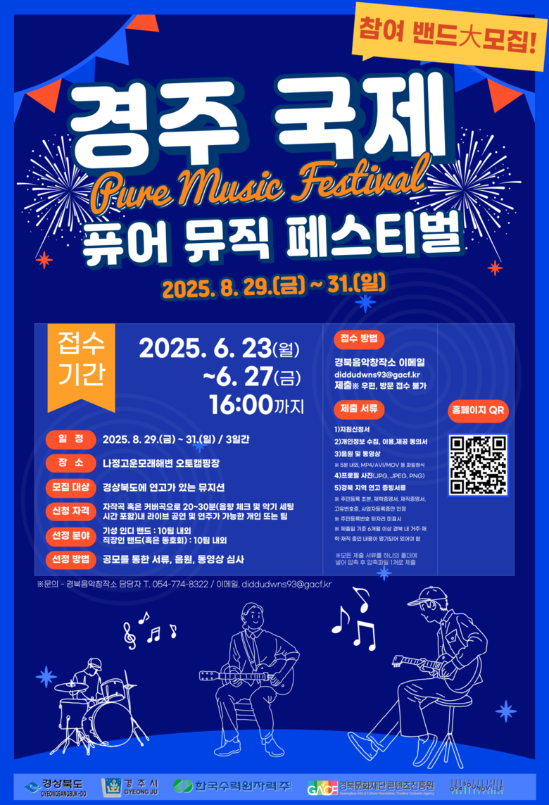 국내외 인디 뮤지션, 지역 직장인 밴드, 음악 동호회 등이 함께하는 개방형 음악 축제로, 경북 연고 뮤지션들에게는 글로벌 무대에서 자신을 알릴 특별한 기회가 될 전망이다.