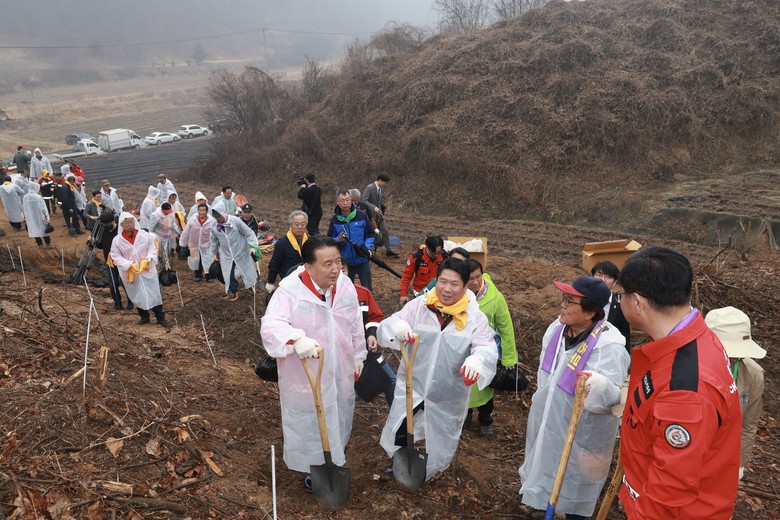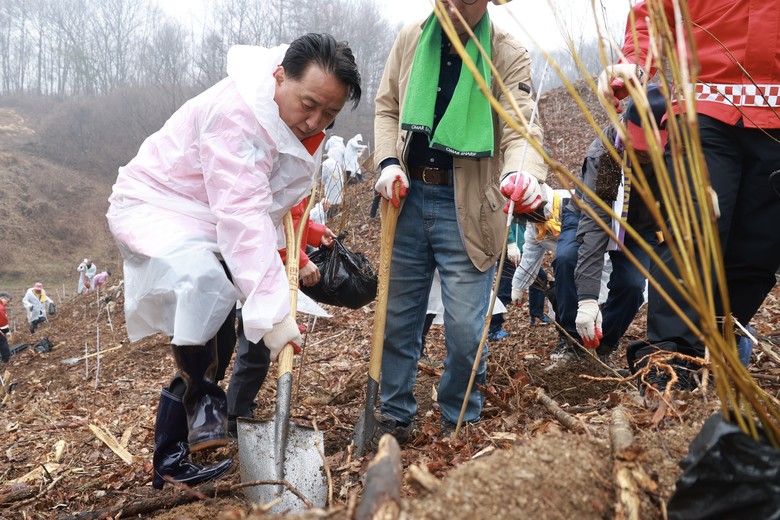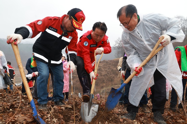 나무심기는 숲 조성을 통해 기후위기 대응과 탄소중립 실현에 동참할 수 있는 행사로, 참가자들은 3.6ha의 산림에 헛개나무 14,500본을 심는 값진 시간을 함께했다. 또한, 참석자들에게 왕자두나무 등 묘목을 나눠 주는 ‘내 나무 갖기 캠페인’도 함께 진행됐다.