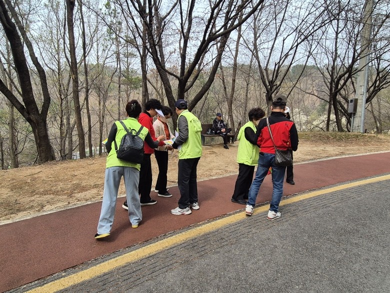특히 참여자들은 봄철을 맞아 사정공원을 찾은 구민들에게 산불 예방수칙에 대한 홍보물을 배부하며 산불 예방의 중요성을 집중적으로 알렸다.