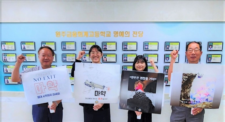 [강원도 세계타임즈=김민석 기자] 원주금융회계고등학교 민찬기 교장이 9월 21일(목) 교문에서 등교 학생을 대상으로 “마약-출구 없는 미로! 절대 시작하지 마세요!” 메시지와 함께 마약 범죄 예방을 위한 「NO EXIT」 릴레이 캠페인에 동참했다.