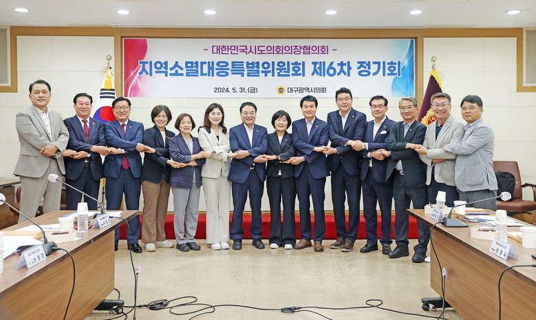 [대구 세계타임즈=한윤석 기자] 대구시의회(의장 이만규)는 31일(금), 시의회 3층 회의실에서 대한민국시도의회의장협의회 지역소멸대응특별위원회 제6차 정기회를 개최했다.