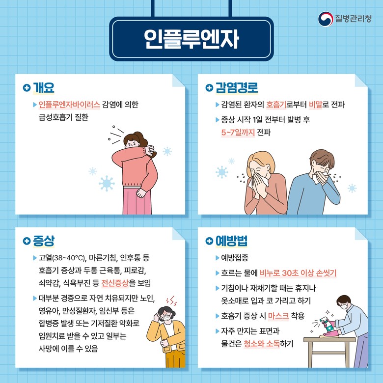 - 충북보환원, 개인위생 관리 철저 및 예방접종 권고 - [충북 세계타임즈=이현진 기자] 충청북도 보건환경연구원(원장 임헌표)은 최근 도내 ‘국가 호흡기바이러스 통합감시(K-RISS)’에서 인플루엔자 유행 양상이 A형에서 B형으로 전환됨에 따라 고위험군의 적극적인 예방접종 참여와 손 씻기, 마스크 착용 등 개인위생 수칙의 철저한 준수를 당부했다.