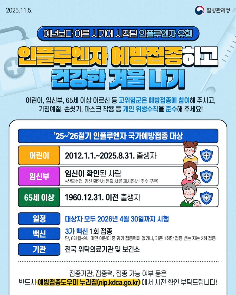 올해 충북 지역은 예년보다 다소 이른 시점에 B형 전환이 이루어지고 있으며, 특히 학교와 학원 등 집단생활을 하는 아동 및 청소년층을 중심으로 빠르게 확산될 가능성이 있어 각별한 주의가 요구된다.