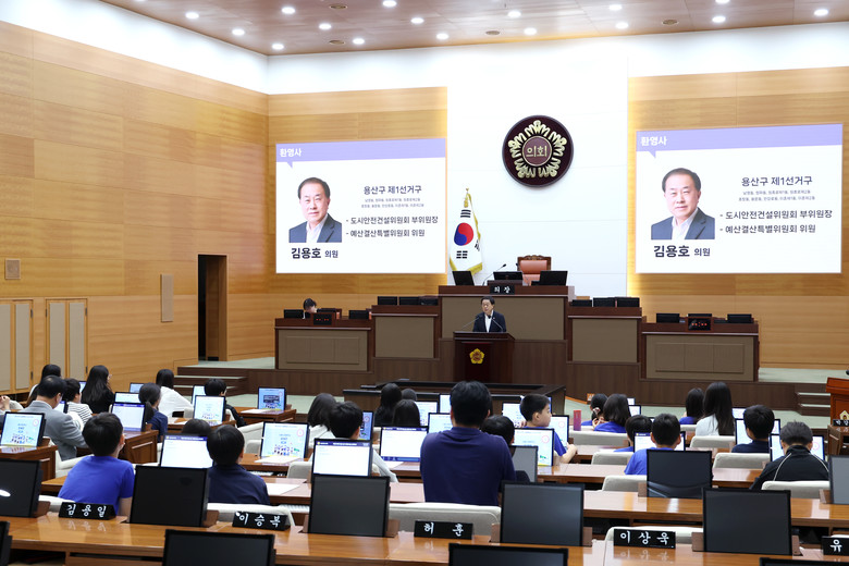 김 의원은 축사를 통해 “서울시의회는 서울시민을 대표해 서울의 미래를 만들어가는 곳”이라며 “오늘 시의회 현장 체험을 통해 학생 여러분들이 민주주의와 지방자치의 소중함을 몸소 느끼고, 앞으로 서울과 지역에서 우리 사회를 이끌어갈 큰 인재로 성장하길 기대한다”고 말했다.