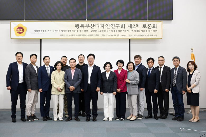 부산광역시의회 의원연구단체 ‘행복부산디자인연구회(대표의원 김광명(남구4, 국민의힘))’가 주최하는 「행복부산디자인연구회 제2차 토론회」가 21일(금) 14시, 부산시의회 중회의실에서 개최됐다.