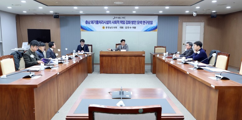[충남 세계타임즈=이현진 기자] 충남도의회 ‘충남 폐기물처리시설의 사회적 책임 강화 방안 모색 연구모임’(대표 김민수)은 22일 보건복지환경위원회 회의실에서 회의를 열고, 폐기물처리시설의 책임 강화를 위한 종합 정책 방안을 논의하며 연구 활동을 마무리했다.