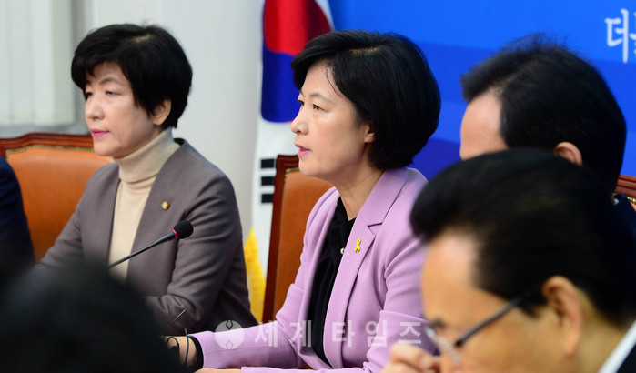 9일 오전 서울 여의도 국회 더불어민주당 당대표실에서 열린 최고위원회의에서 추미애 대표가 모두발언을 하고 있다. 이날 추미애 대표는 외교부의 반기문 전 유엔 사무총장 귀국환영행사 지원 방침에 대해 "법적 근거가 없는 전관예우 행사를 하겠다는 건 박근혜 정부의 반기문 띄우기에 다름아니다"라고 비판했다. 2017.01.09.