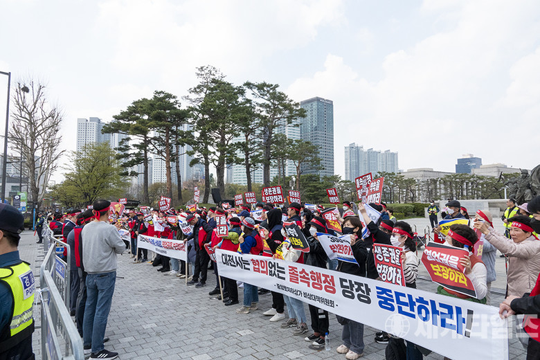 그러면서 비대위는 집회에서 크게 3가지를 요청하고 있다. ▲'대전시 행정오류 재검토 요청'과 ▲'입찰방법 변경', ▲'납부된 부당책정 과대임대료 300억 원 배상' 등을 요구하면서 정부와 대통령실에서 해결해 줄것을 요청했다.