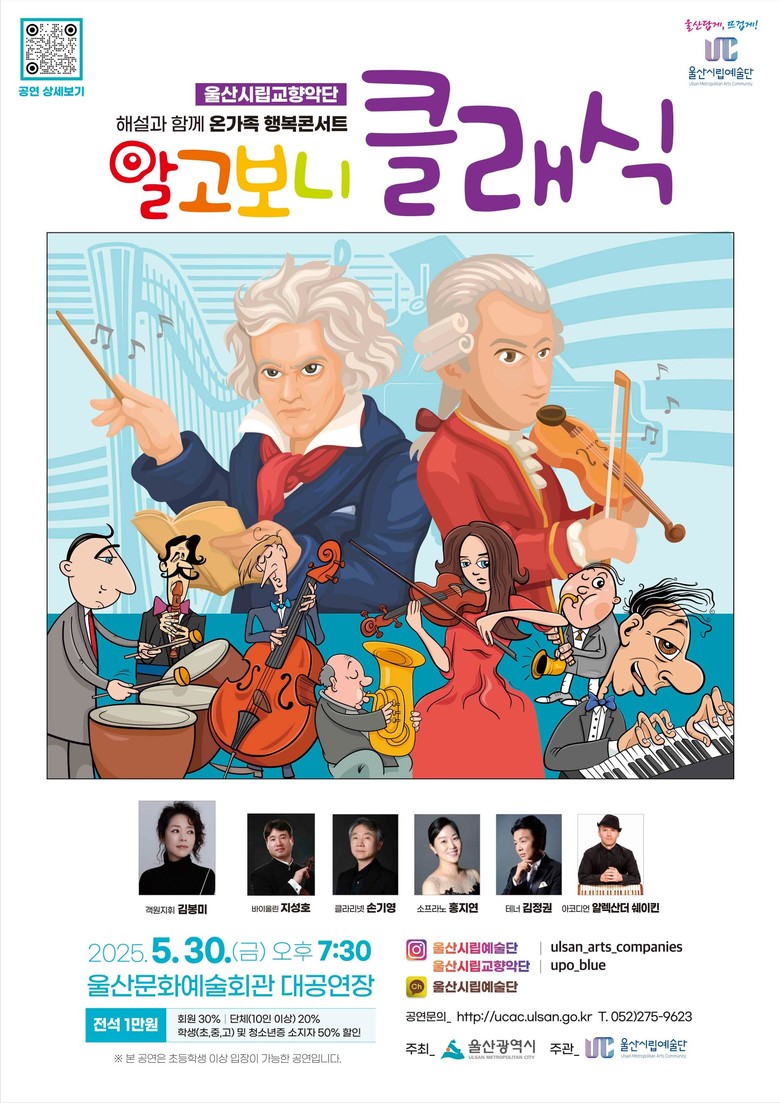 바이올린·클라리넷·아코디언·성악 등 다채로운 협연과 해설 함께 [울산 세계타임즈=이호근 기자] 울산시립교향악단은 오는 5월 30일(금) 오후 7시 30분 울산문화예술회관 대공연장에서 가정의 달 특별기획으로 해설과 함께 온가족 행복콘서트 <알고보니 클래식> 무대를 선사한다.