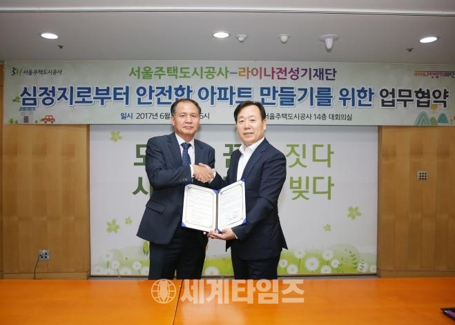 SH공사는 심정지에서 안전한 아파트를 만들기 위해 라이나전성기재단과 업무협약(MOU)을 체결했다고 13일 밝혔다.