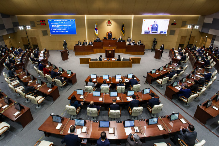 고우현 의장은 개회사를 통해 “설 연휴에도 방역에 협조해 주신 도민들과 최일선에서 코로나 확산 방지에 전념하고 있는 의료진과 공직자의 노고에 감사”를 전하면서 “올해는 새시대를 향한 경북의 발전과 도약을 위한 경북 대전환의 원년인만큼, 경상북도의회 또한 전문성 및 독립성 향상으로 도민들의 눈높이와 기대에 부응하는 의회로 거듭나 지금의 위기를 이겨나가는데 앞장서겠다”고 강조하였다.