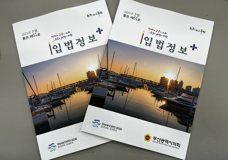 [부산 세계타임즈=이용우 기자] 부산광역시의회(의장 안성민)는 3월 23일 「입법정보 플러스」(제61호)를 발간.배포했다.