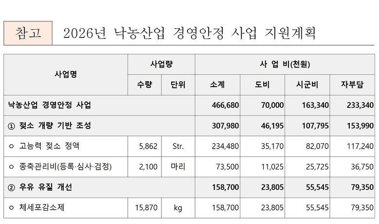 ② 고능력 정액, 젖소등록‧심사‧검정, 체세포감소제 등 3개 분야 5억 원 투입