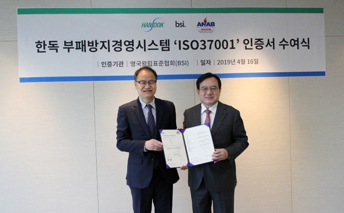 한독이 획득한 ‘ISO37001’ 인증은 국제인정기관인 ANAB(ANSI-ASQ National Accreditation Board)으로부터 인증기관으로 지정 받은 영국왕립표준협회(BSI, British Standards Institution)가 심사, 평가해 부여한 것이다. 영국왕립표준협회는 1901년 설립된 세계 최초의 국가표준제정기관이자 영국의 왕립기구이다. 국제표준화기구(ISO)의 설립을 주도하고 37,000개 이상의 국제표준을 개발했으며 ‘ISO37001’의 근간이 되는 BS10500(영국 뇌물방지경영시스템 표준)을 제정한 바 있다.