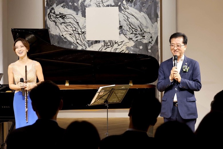 [대전 세계타임즈=이채봉 기자] 대전시의회 조원휘 의장은 지난 14일 동구 인동 헤레디움에서 대전0시축제의 일환으로 개최된 ‘최나경 갤러리 콘서트’에 참석해 최나경 플루티스트를 비롯한 예술공연팀 ‘카바티나 클래식’과 인사를 나누고, 대전문화재단 백춘희 대표이사 등 관계자들을 격려했다.