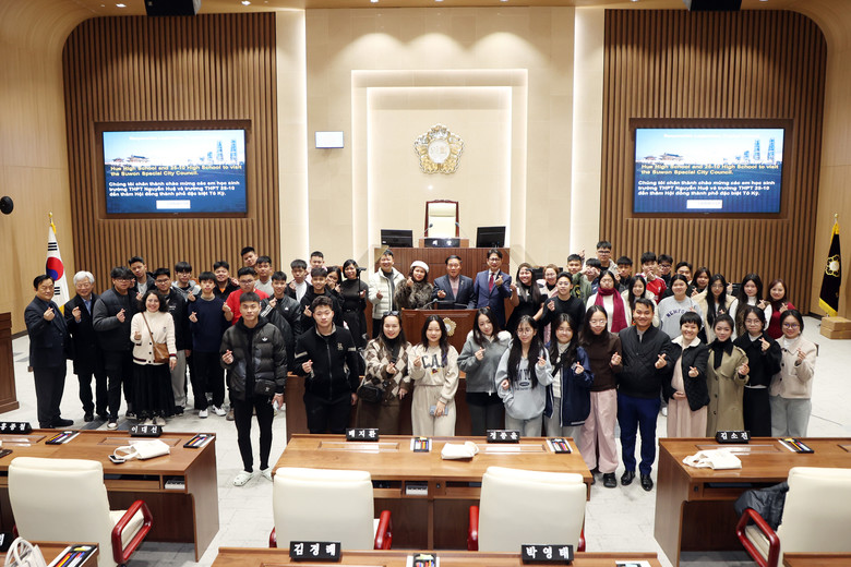 해당 프로그램은 베트남 학생들의 한국 스터디 투어 일정의 일환으로, 지방의회의 역할과 민주적 의사결정 과정을 직접 체험할 수 있도록 마련됐다. 이날 행사에는 수원특례시의회 이재식 의장을 비롯해 현경환 의원(파장·송죽·조원2)이 참석해 방문단을 환영했다