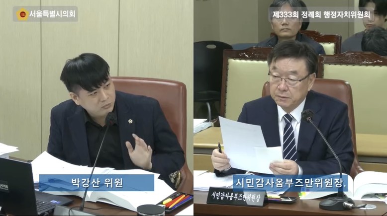 [서울 세계타임즈=이장성 기자] 서울시의회 박강산 의원(더불어민주당·비례대표)은 14일 서울시 시민감사옴부즈만위원회(이하 위원회)를 대상으로 한 2025년도 행정자치위원회 행정사무감사에서 인권현장 탐방 프로그램을 재정비하여 향후 양질의 운영에 나설 것을 촉구했다.